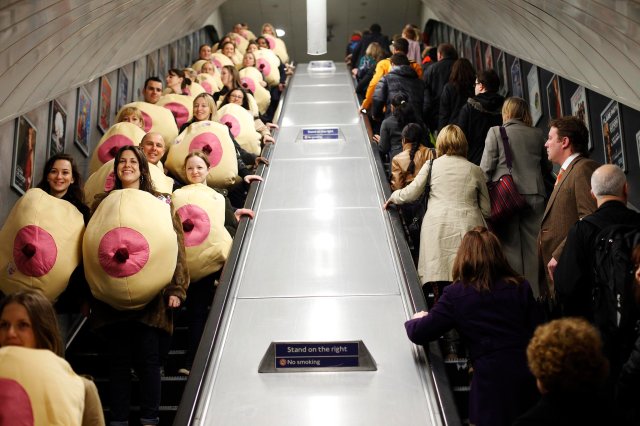 The BoobTube was out in force on the tube and around Oxford Circus, bewildering commuters, trending on Twitter, and spreading the CoppaFeel! message to all. We love the pictures, and we love Kris and her team for their important work.