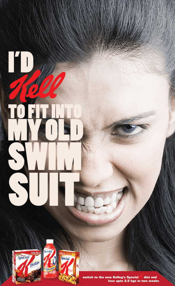 But you know what? No, Special K. No, you do not get to sell yourself as a brand who cares about empowering women. You – with a product that has been banned in Denmark for potential health risks when eaten every day; your short term weight loss promises; or your 2012 ASA ban in Britain for “misleading information about calorific value and weightloss” – you are not a company who gives one tiny crap about the well-being and happiness of women at large. Your diet encourages a distorted relationship with food designed to sell more of your own products: and because it’s well established that diets fail, you can rest assure that your customers will keep coming back. You are part of the problem: and you do not get to sell your exploitative wares back to the very women you’re helping to manipulate under the guise of empowerment. Graaaa.